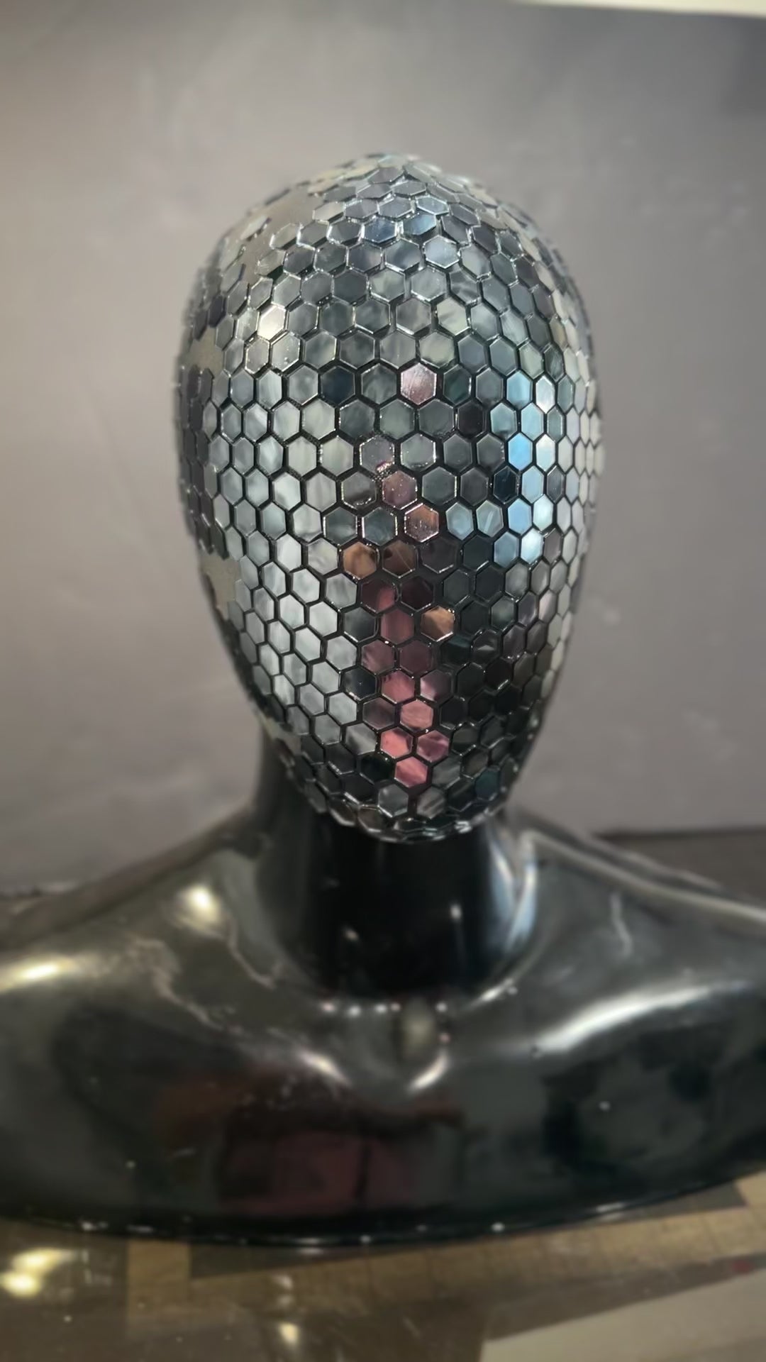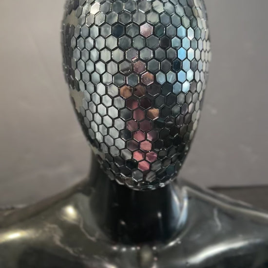 The Honeycomb - Mirror Glass Mask mirror pieces painted a abstract black color tone.